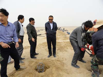 當(dāng)天早晨,王總經(jīng)理在集團(tuán)副總經(jīng)理、格爾木水電有限公司總經(jīng)理于宗甲陪同下,首先來(lái)到正在開展建前準(zhǔn)備工作的格爾木市東出口20兆瓦光伏發(fā)電站工地,察看了選址條件和水、電、路設(shè)施,詳細(xì)詢問(wèn)了前期手續(xù)申報(bào)和施工準(zhǔn)備情況,并參觀了周圍在建同類項(xiàng)目施工現(xiàn)場(chǎng)和匯流送出工程。他要求集團(tuán)新能源辦繼續(xù)全力以赴推動(dòng)工作,格水電公司積極予以支持配合,加快完成項(xiàng)目報(bào)審程序,及早進(jìn)入工程建設(shè)階段,確保其在年底前投產(chǎn)發(fā)電,并力爭(zhēng)進(jìn)一步擴(kuò)展規(guī)模,真正用足用好國(guó)家扶持太陽(yáng)能發(fā)電產(chǎn)業(yè)的各項(xiàng)政策。