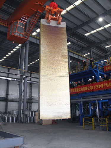 12月14日上午10時30分,青海聚能鈦業(yè)有限公司以熔煉功率為4800千瓦電子束冷床(簡稱EB爐),成功產(chǎn)出重達15噸的超大規(guī)格純鈦錠,創(chuàng)造了我國鈦金屬鑄錠行業(yè)的新記錄,也標志著該公司投資5.4億元的鈦及鈦合金熔鑄項目基本建成,并躍居中國EB爐鑄錠行業(yè)產(chǎn)能之首。