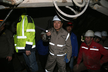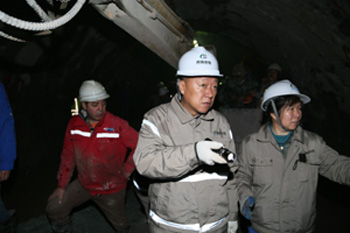 慰問(wèn)期間,集團(tuán)領(lǐng)導(dǎo)一行乘坐軌道車(chē)深入到距離洞口7.4km的輸水隧洞出口段施工現(xiàn)場(chǎng),仔細(xì)察看了TBM維修當(dāng)前開(kāi)挖掌子面巖性和主洞、旁通洞第三段人工鉆爆施工狀況,要求參建各方加強(qiáng)溝通協(xié)調(diào),縝密安排施工計(jì)劃,強(qiáng)化現(xiàn)場(chǎng)管理,高度重視安全工作,切實(shí)加快施工進(jìn)度和TBM改造工作,合理規(guī)劃,統(tǒng)籌兼顧,為TBM盡早啟動(dòng)掘進(jìn)創(chuàng)造條件。