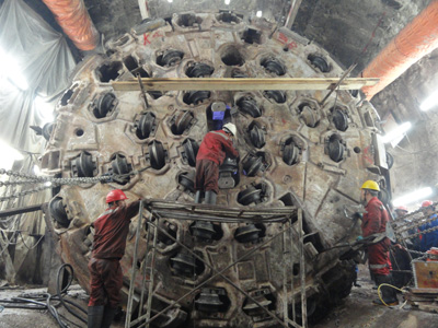 近一年多來,青海水電集團在省委、省政府的正確領導和省水利廳、省引大濟湟工程建設管理局的關心支持下,進一步堅定信心、迎難而上,加強現場管理,周密協調好各參建單位之間的關系,團結協作、爭抓實干,持續改進、攻堅克難,想盡一切辦法保證工程安全和質量,盡一切可能加快施工進度,為早日實現輸水隧洞貫通的目標做出了最大的努力。特別是,堅持將加快出口段TBM解困、改造和人工開挖,以及進口段TBM趕工作為施工管理的重中之重。在省政府召開會議專門研究確定輸水隧洞2014年底貫通的總目標后,主要抓了以下幾個方面的工作:一是為破解工程施工難題尋求更多的技術支持,多次組織召開技術咨詢會,針對工程建設的突出難題,分析研判復雜地質條件下隧洞施工技術方案,并對“加快出口段TBM解困及升級改造,利用TBM維修期間以人工鉆爆法向上游側開挖斷層帶160米,剩余洞段由TBM掘進通過的”的總體施工思路進行了論證和確認。此后,又立即組織承包人編制了“采用人工鉆爆方法通過TBM卡機處前方160米復雜地質洞段的上半洞斷面,下半斷面及隧洞剩余洞段直接采用TBM掘進通過,隧洞貫通點確定為15+000”的方案。二是配合項目業主多次前往施工、設計方總部及其上級主管單位,溝通解決其服務過程中存在的問題,督促其切實提高認識、履行職責,加強資源配置,緊密協作、合力攻堅,并多次邀請施工承包人、分包人高層領導來現場解決問題,共同推動工程建設進展。引導CMC公司改進現場組織管理模式,敦促其加強內部溝通協調,形成項目經理責、權、利相統一的運行機制,進一步加快TBM拆卸洞室開挖和拆卸工作進度,有效扭轉了出口段施工停滯不前的局面。三是落實省政府關于制定工程質量、進度、安全、費用及資金保障等“一攬子”整體推進實施方案的要求,堅持求同存異、直面現實,組織各方充分溝通和協調,在工程建設現場管理的具體問題上達成了共識,就輸水隧洞剩余洞段施工形成了明確的、統一的方案,為各方齊心協力、積極作為,不折不扣地落實工作任務創造了有利條件。四是緊緊圍繞省政府決策部署和既定的總思路,加強現場組織管理和協調服務,加大監理、質檢工作力度,特別是督促中隧股份履行合同職責,發揮好主體作用,就出口段斷層帶人工開挖、不良地質洞段加固處理等方面加強與CMC公司高層的溝通和配合,共同研究制定施工方案,在技術上、資金上給予大力支持。14個月來,利用一切可以利用的時間和空間,加快出口段F4-F5斷層帶人工清理工作,完成旁通洞第一、二段全部及第三段原線路和新線路的施工,完成TBM上部洞室、改造洞室開挖并支護,并完成啟動洞室全部開挖支護工作,開挖支護主洞上半斷面近140米。五是著力加快出口段TBM改造升級工作,完成TBM各分系統硬件拆除、檢測及定制加式、維修、更新和安裝調試等一系列任務, TBM于2014年9月12日重啟試掘進。六是精心組織,充分發揮了進口段TBM趕工作用。近14個月來,克服斷層帶不良地質條件帶來的諸多困難,新增掘進進尺7.65千米,平均日進尺超過18米。