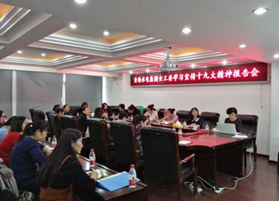 為深入學習宣傳貫徹黨的十九大精神,迅速掀起學習宣傳貫徹十九大精神熱潮,引導各級女工干部、廣大女職工把思想和行動統一到黨的十九大精神上來,把力量凝聚到實現黨的十九大確定的各項任務上來,1117日上午,青海水電集團副總經理、女工委主任徐強,為公司各級女職工委員、女工干部和女職工代表宣講黨的十九大精神。