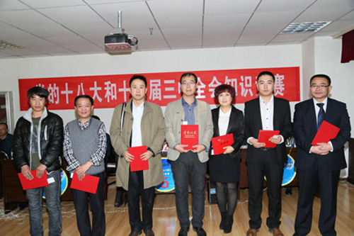 集團(tuán)黨委副書記、工會主席李建民同志在競賽活動結(jié)束時指出,競賽方式有利于進(jìn)一步鞏固和擴(kuò)大學(xué)習(xí)宣傳黨的十八大和十八屆三中全會精神的成果。他強(qiáng)調(diào),集團(tuán)各級黨組織和工會組織把學(xué)習(xí)宣傳貫徹落實(shí)黨的十八大、十八屆三中全會精神作為當(dāng)前和今后一個時期的重要政治任務(wù)來抓,與深入學(xué)習(xí)習(xí)近平總書記系列講話精神相結(jié)合,以此次競賽活動為契機(jī)、科學(xué)謀劃、精心安排,乘勢而上、狠抓落實(shí),參賽隊員要切實(shí)履行好骨干宣傳員的使用,發(fā)揮好帶動輻射和先鋒模范作用,持續(xù)引導(dǎo)全體黨員和干部職工深刻領(lǐng)會黨的十八大和十八屆三中全會精神實(shí)質(zhì),準(zhǔn)確把握全面深化改革的重大決策部署,密切聯(lián)系實(shí)際,學(xué)以致用、學(xué)用結(jié)合, 為促進(jìn)企業(yè)改革發(fā)展,服務(wù)“三區(qū)建設(shè)”、實(shí)現(xiàn)“兩新目標(biāo)”,做出新的更大的貢獻(xiàn)。